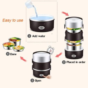 Disfruta de tu comida caliente en cuestión de minutos. La Lonchera de 3 Pisos está diseñada para calentar rápidamente, asegurando que tu almuerzo esté listo sin demoras.